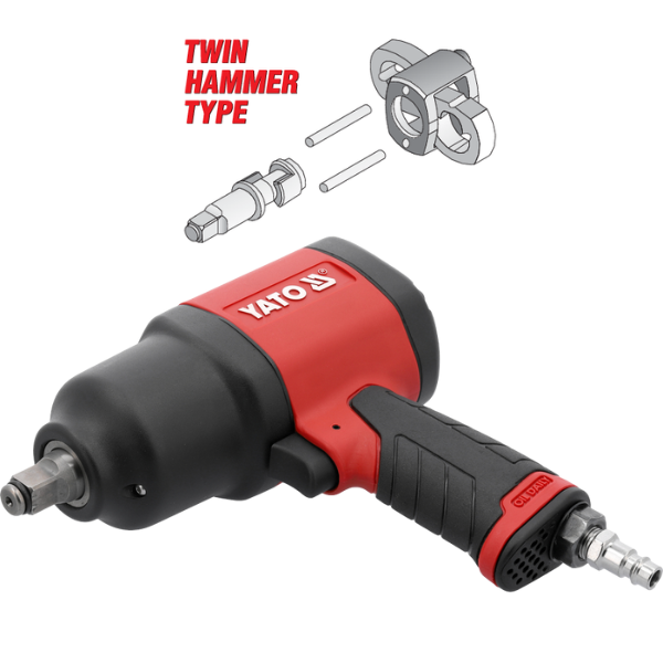 Súng Yato YT-09546 hoạt động dựa trên nguyên lý động năng khí nén và cơ cấu búa kép (Twin Hammer):